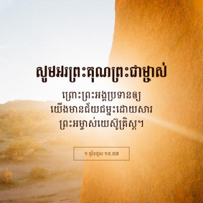 តែអរព្រះគុណដល់ព្រះ ដែលទ្រង់ប្រទានឲ្យយើងមានជ័យជម្នះ តាមរយៈព្រះយេស៊ូវគ្រីស្ទ ជាព្រះអម្ចាស់របស់យើង។ ១ កូរិនថូស 15:57 គកស១៦